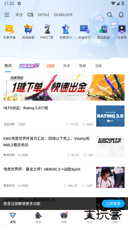 完美世界电竞APP是一款由完美世界官方打造的游戏社区平台,在这个平台也是带来了全面的社区内容,用户朋友是能够获取到海量的游戏数据的,在这里您也是能够第一时间了解到最新的游戏动态资讯等等,有需要了解更多的朋友现在就来下载使用吧!