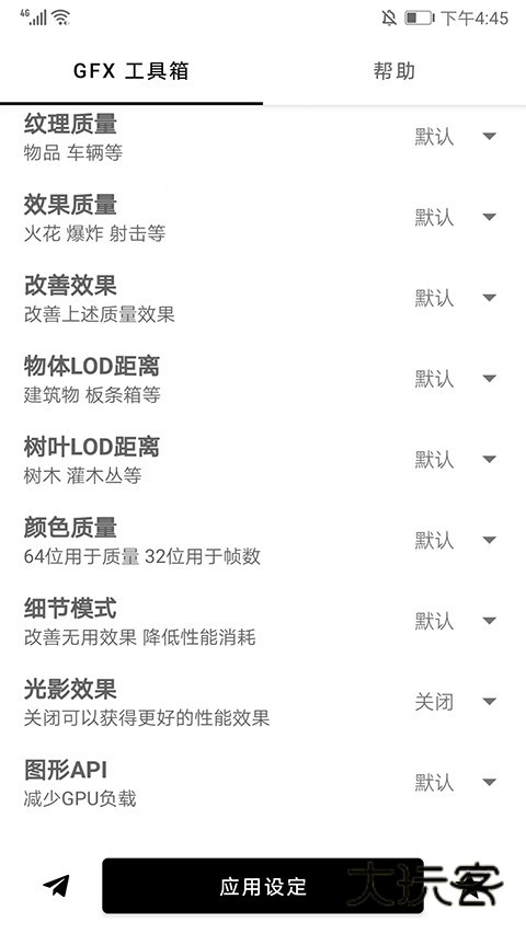 gfx工具箱为喜欢玩手游的小伙伴们提供了更清晰流畅的游玩体验,让用户可以通过调整游戏的分辨率、帧率、阴影等属性获取更高清稳定的游戏乐趣。软件不仅适合多种版本的吃鸡游戏,而且对手机的兼容性也非常不错,值得下载体验。