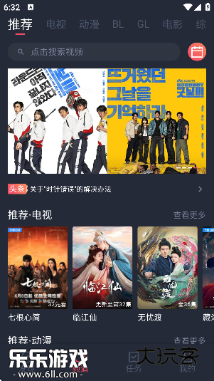 1、在“频道”页面的搜索框中,搜索自己想看的剧或者电影、综艺