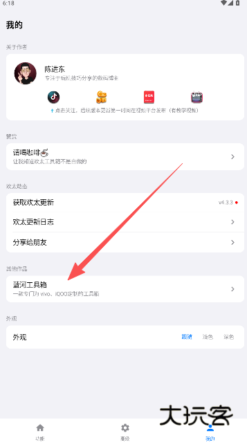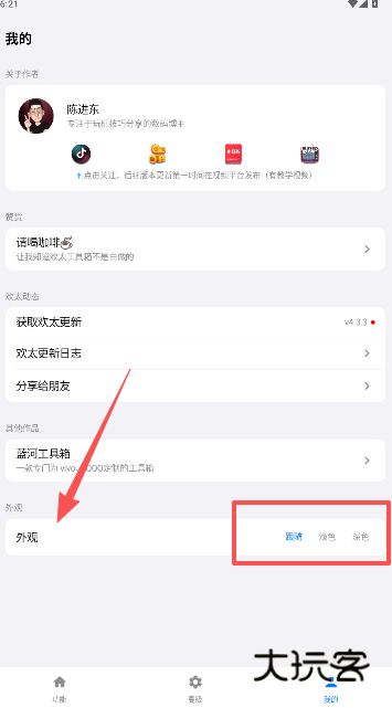 1、进入软件以后,点击我的页面,找到底部外观功能。