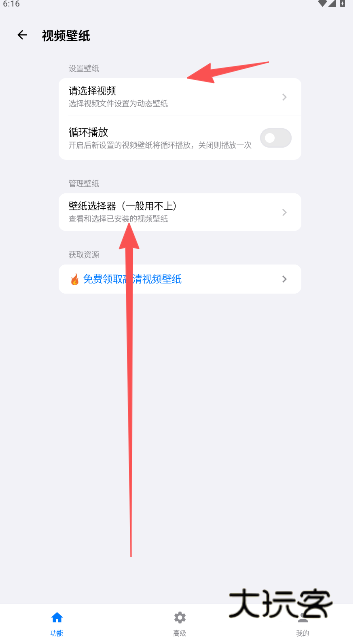 1、打开在本网站下载好的应用,点击功能区设置视频壁纸。
