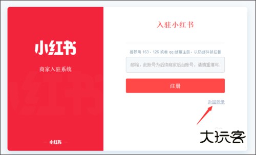 7、返回刚才小红书注册界面,点击下方的返回登录,进行登录;