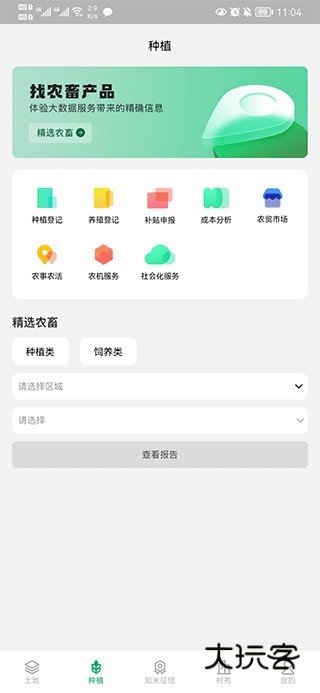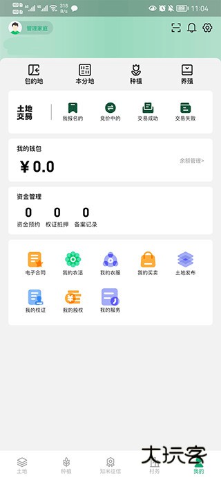 3、用户在种植区可以查看自己的各种种植信息,还能够申请登记,购买农资。