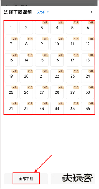 3、勾选需要下载缓存的剧集,或是点击【全部下载】
