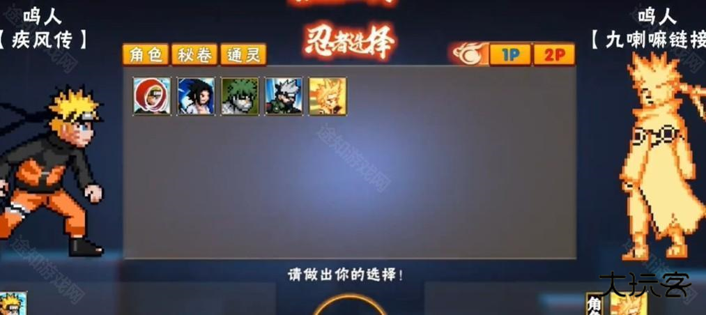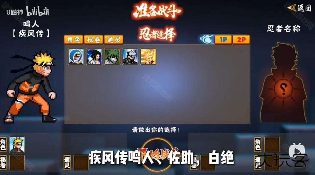 3、经典复古的像素风图形打造的各种帅气忍者,可以操控这些忍者来同其它动漫之中的角色进行格斗。