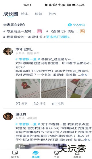 3、在世界界面,有着成长圈,时光机,父母专栏等栏目