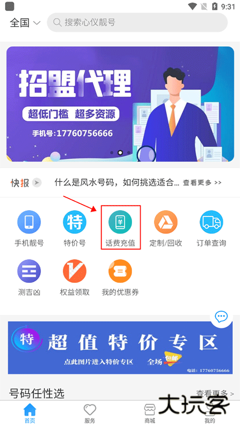 号令天下是一款非常好用的手机选号软件,同样的软件中有着非常丰富的功能可以进行使用同样的软件中界面设计的非常的简洁操作也很简单没有任何的广告,软件中用户可以自由的选择需要的电话号码进行使用非常的方便,并且软件中还有着电话充值服务为用户提供各种便利,当然软件中用户还可以进行号码查吉凶非常的有趣,软件中还有多种优惠券等待着用户获得使用。