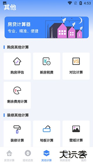 2、点击其他计算可以查看购房评估、新房税费、剩余费用计算和装修计算等。