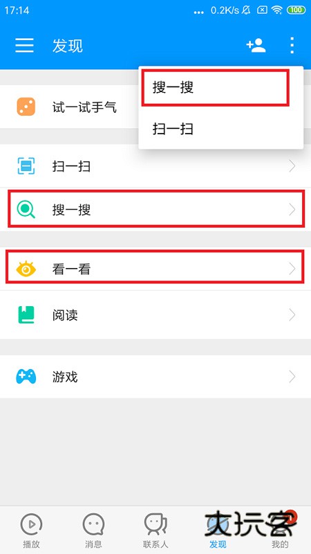 -在【发现】板块中的【搜一搜】 【看一看】;