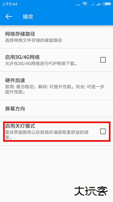 -启用关灯模式,可以在夜间看片时降低屏幕光线刺激,获得更舒适的观影体验。