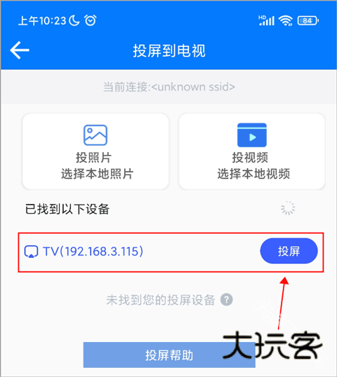 3、软件还支持投屏功能,在同一网络下的投屏设备都可以检测得到;