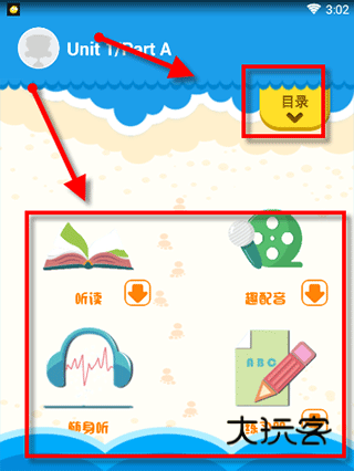 3、选择好了以后,就按照你自己的需要,可以从四个方面开始学习啦,里面就有听读跟读功能