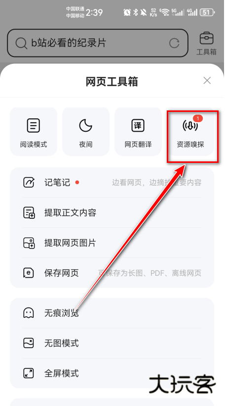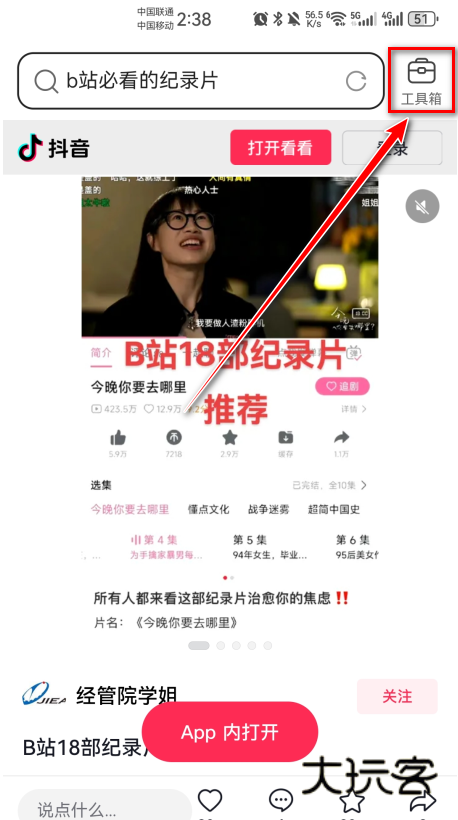 1、在qq浏览器中打开我们想要保存的视频,点击右上角的工具箱。
