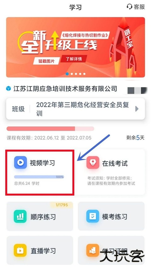2、点击【视频学习】,根据进度条可查看自已完成学时数。