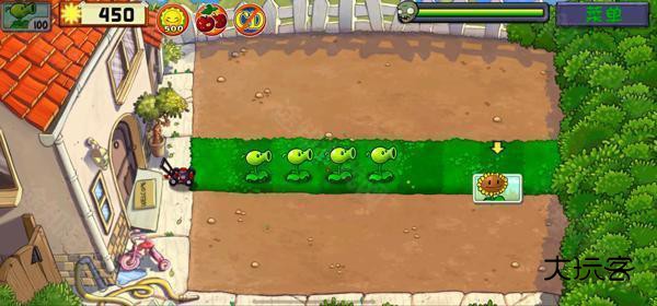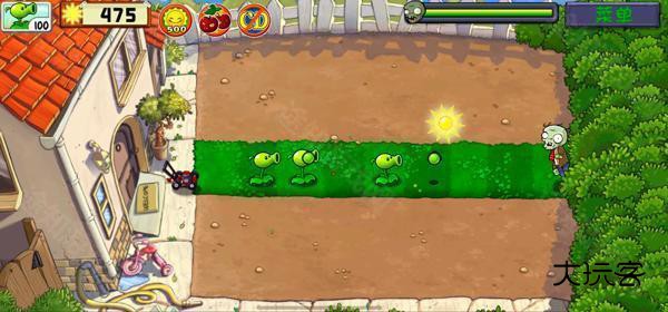 要点1:上来撑场面的普通豌豆要尽量往前补,因为你离敌人越远,打出的豌豆飞行时间越长,DPS(每秒伤害)越低,推荐放在左数第三列。