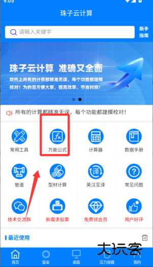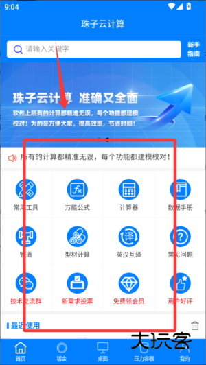 1、下载并打开珠子云计算app,在主界面选择计算类型,如基础数学、钣金放样或压力容器计算。