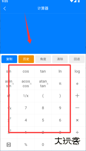 进入历史页面中查看个人的运用计算器计算数据的历史记录回顾信息;
