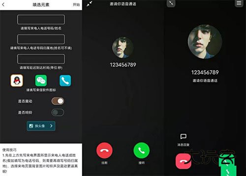 填写好号码或者名称、号码的归属地、延迟时间以及显示的图表即可模拟,也可以切换头像、更换背景等。最真实的是它还可以震动以及响铃。你可以选择拒绝也可以选择接听,但是接听之后没有声音