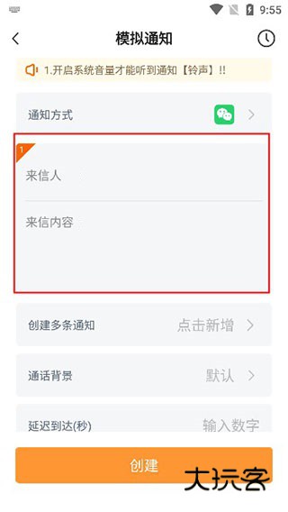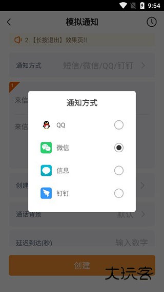 4、填写来信人信息,来信内容、延迟时间、通话背景