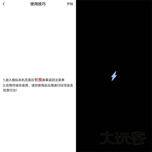 这个功能非常简单,就是点击开始即可模拟关机页面,长按屏幕回到主菜单。