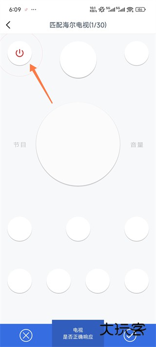 3、点击开机键显示电视是否正确响应如果有就点击√