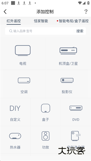 2、遥控器码库支持:数据库收录25W+家电遥控器,涵盖全球6000+家电品牌,支持遥控空调、电视、机顶盒/卫星、网络机顶盒、投影仪、DVD、功放、风扇、单反、开关/灯泡等数十种家电!