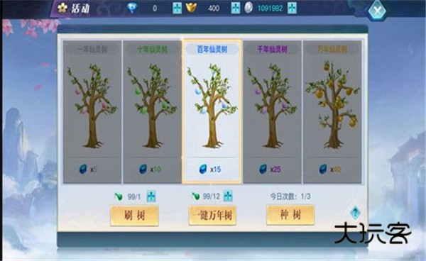 帮会作为长期居住的场所,环境当然也要有保障。在“活动”界面中玩家可以参与帮会种树,一起来维护帮会的环境。树的种类不同其收获时所获得的“强化石”数量也就不同,玩家不仅可以收获自己的树,也可以对其他玩家的树进行掠夺哦~所以一定要算准时间,及时收获呢!