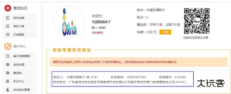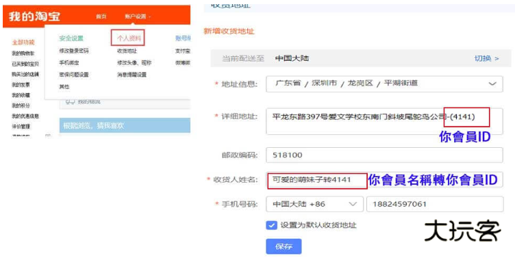 第四步 将专属收货信息复制到网购平台作为收件地址(以淘宝为例)
