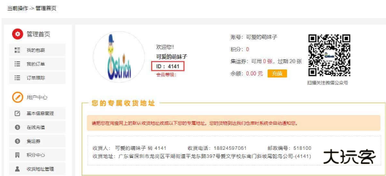 第二步 登录后,在“管理首页”页面可以看到您的会员ID