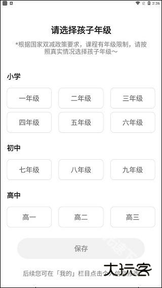1、注册并登录软件,在开始使用之前,请选择孩子的年级。