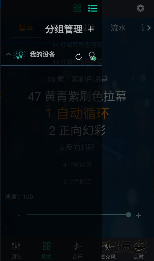 1、可对幻彩灯带进行开关控制,颜色控制,模式设置,并特别支持超过200种幻彩显示效果。