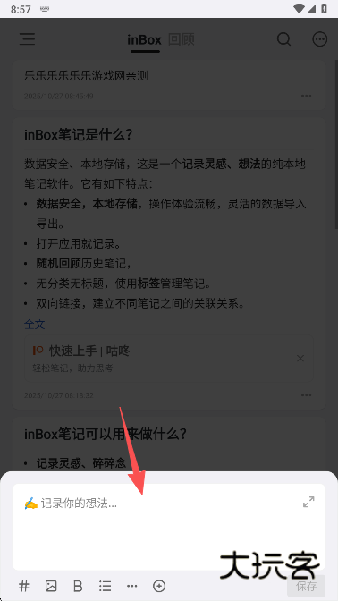 1、在本站下载安装inbox笔记app打开,点击下方的记录的想法