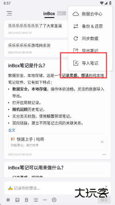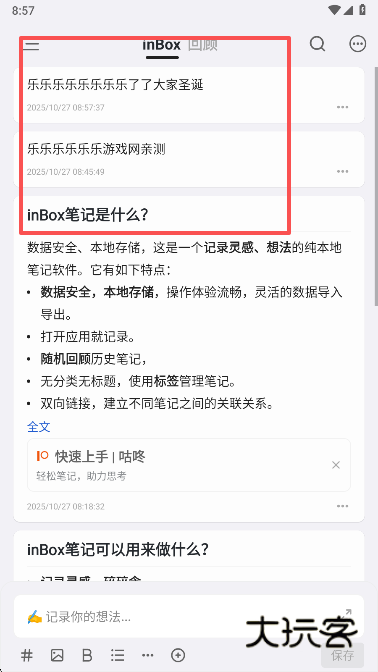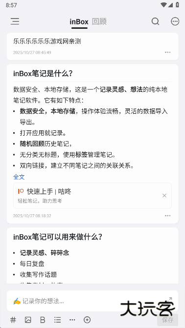 inbox笔记app这是一款专业的笔记类应用,通过该应用用户是能够随时随地记录笔记的,能够为大家带来便捷高效的笔记记录服务,也是可以更加轻松的满足大家的笔记需求,如果您正在找一款专业的笔记记录应用,现在就来下载inbox笔记app看看吧!