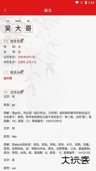 3、综合出生八字、五行、三唯五盒、生肖、字型含义,多角度专业分析名字,使孩子的名字与众不同。