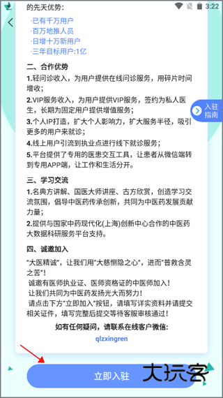 2、进入中医师招募计划页面,点击入驻指南可提前了解入驻操作的全流程,点击立即入驻。