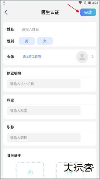 3、跳转至“医生认证“页面,输入信息并点击"提交"。(俏郎中会在1个工作日内完成相关信息审核)
