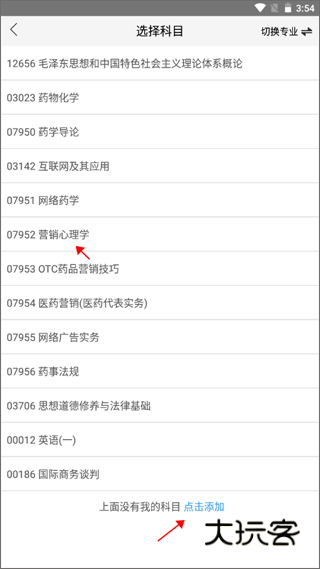 4、点击其中一个专业之后,页面又跳转到科目选择,你需要选择你要练习的科目,如果没有你的科目可以点击下方的“添加”按钮。