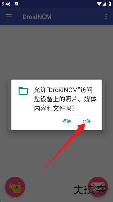 1、打开DroidNCM转换器APP,授予软件扫描本地文件的权限。