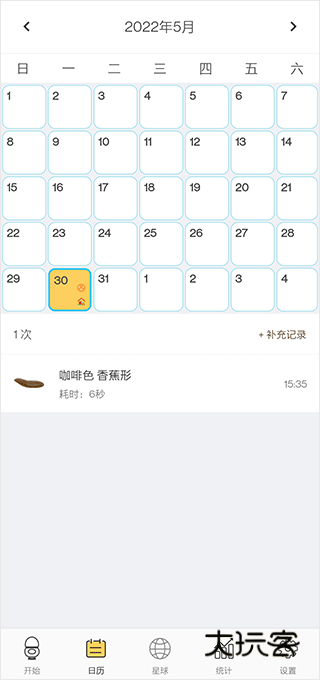 5、日历里可以查看到每日的便便情况,还可以补充遗漏的情况;