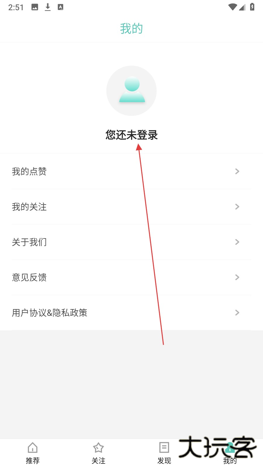 3、在个人页面,点击【您还未登录】,进入登录选择页面。