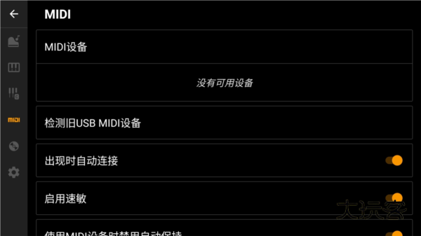 5、如果你有MIDI设备,那么你可以通过连接线来连接到手机上,然后在设置页面中的MIDI设置页设置MIDI设备。