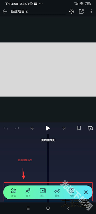 5、可以添加形状、文本、媒体(手机上的图片和音乐还有视频)、图纸、元素;
