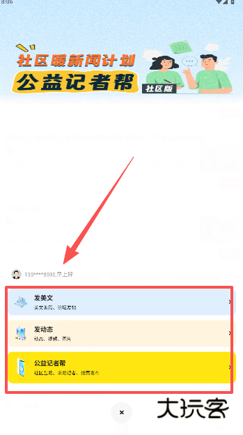 5、中间红色+号,属于软件内另外一项,主要是以论坛的形式展现,比如发美文日常记录、发动态或是参与公益记者活动等等。