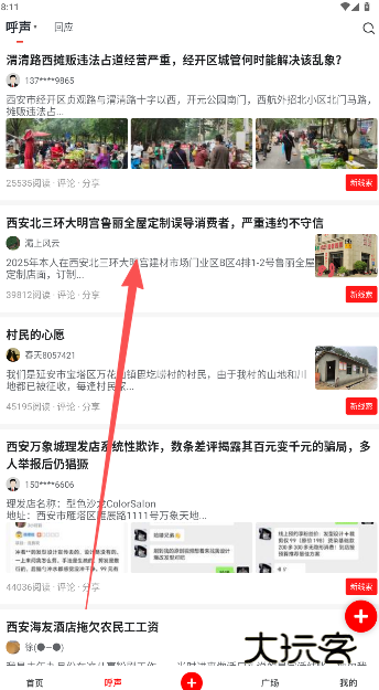 1、在华商头条手机版呼声版块,点击打开发帖内容。