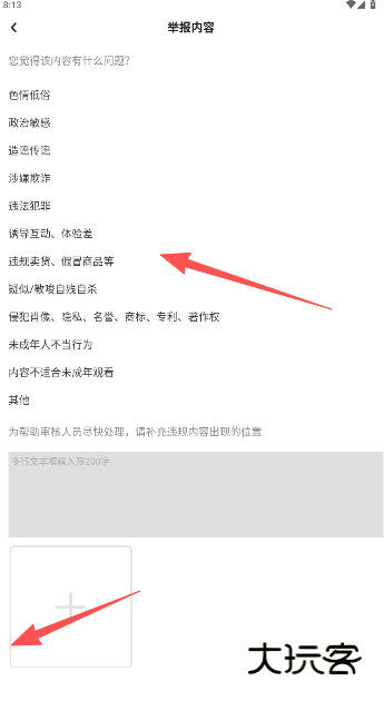 3、举报内容说明要记得选择对应的,添加图文更好。