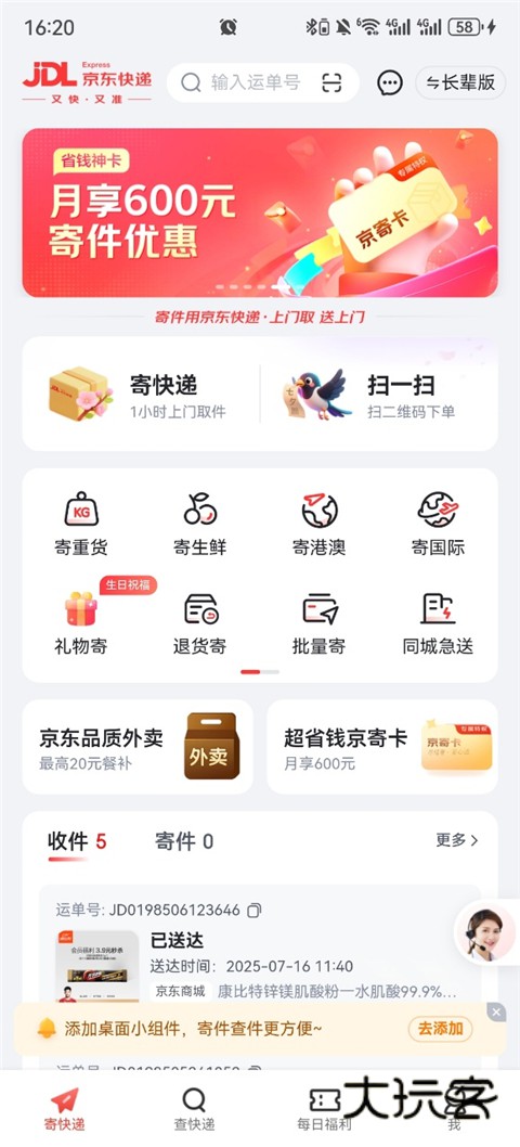 4、特色寄件:提供扫码寄、毕业寄、生鲜寄等特色寄件服务,全面覆盖各种“小哥特色寄”场景。