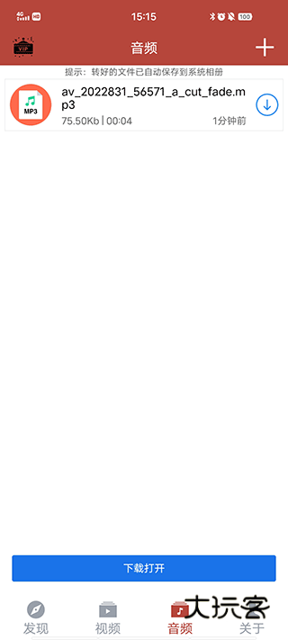 4、剪辑好后,点击确定即可自动保存在音频里了,可以随时畅听。