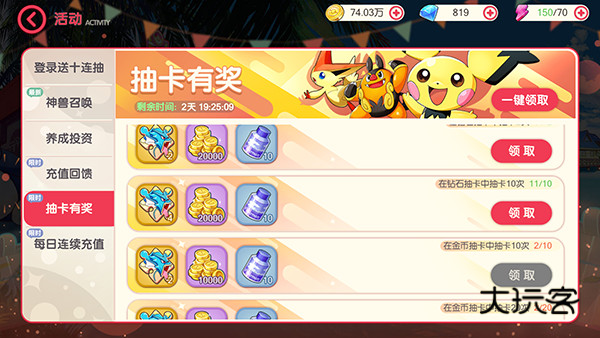 6、最后游戏内还可以通过各种活动、任务、闯关来获取到大量奖励。