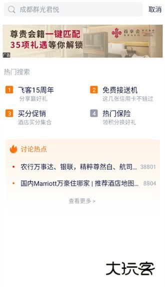 酒店、机票、信用卡促销信息,飞客会员专属优惠。
