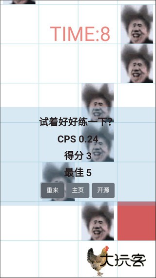 2、玩家需在20秒内尽可能多的点击坤哥,点击的次数越多,时间结束后得分越高。